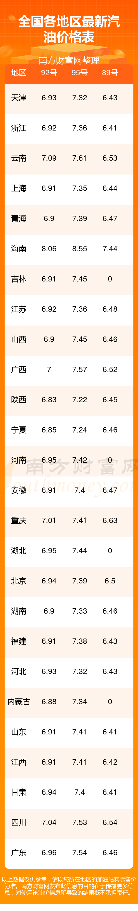 油价调整最新消息:本轮油价调整时间为11月11日 ,调整后全国的油价具体为: