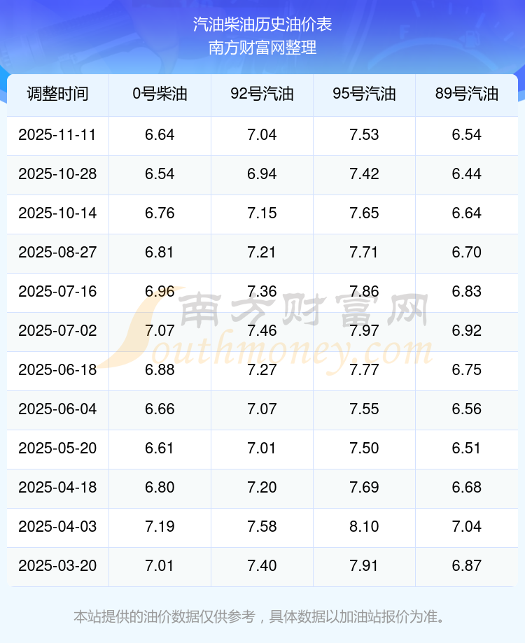2025年92号汽油价格一览表