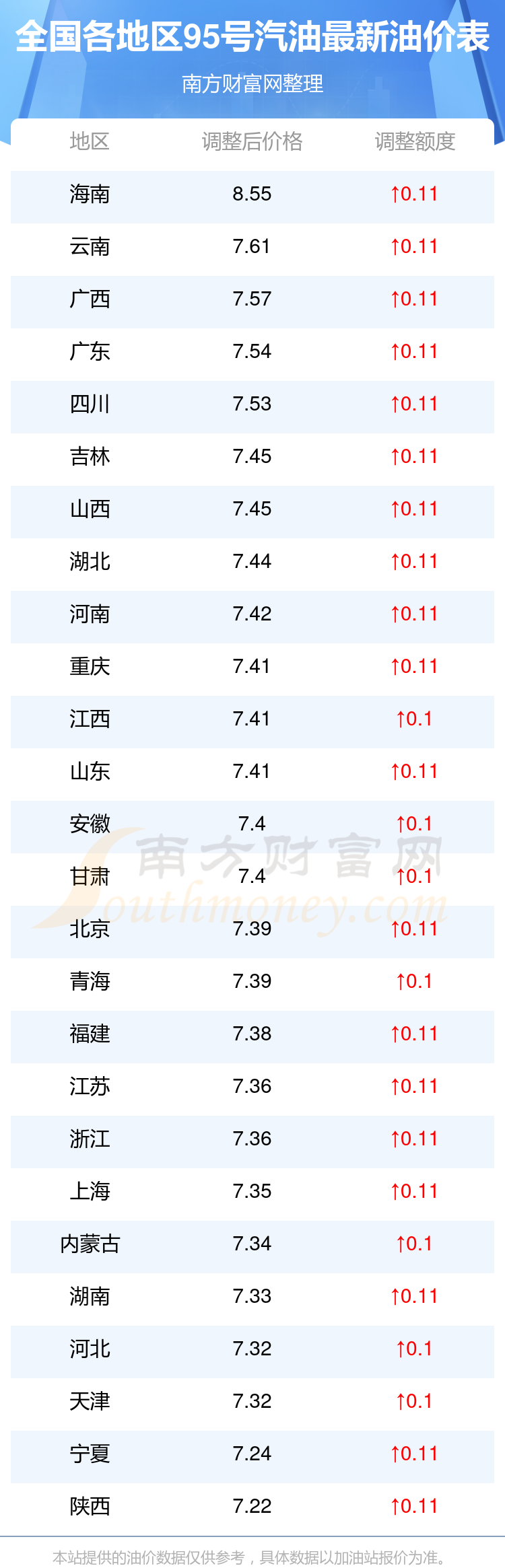 以上数据仅供参考,请以您所在地区的加油站实际售价为准。开云手机web版登录入口发布此信息的目的在于传播更多信息,对使用该油价信息所导致的结果概不承担责任。