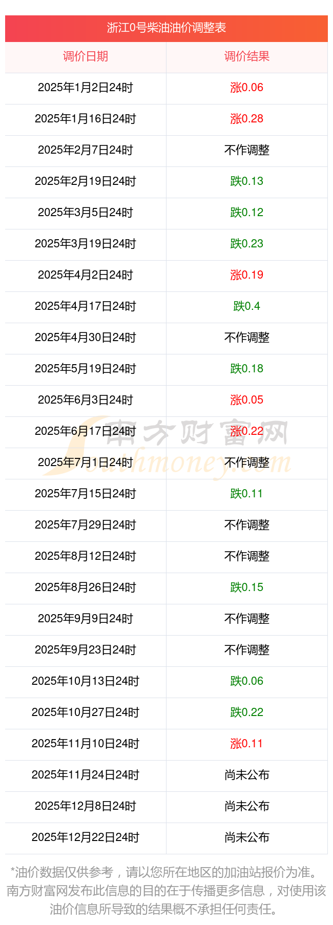 杭州汽油、柴油11月22日每升的价格是多少?11月11日调整后的价格详情如下:92号汽油6.92元;95号汽油7.36元;89号汽油6.41元;0号柴油6.57元。杭州下一轮油价调整时间11月24日24时,距离现在还有2.37天。