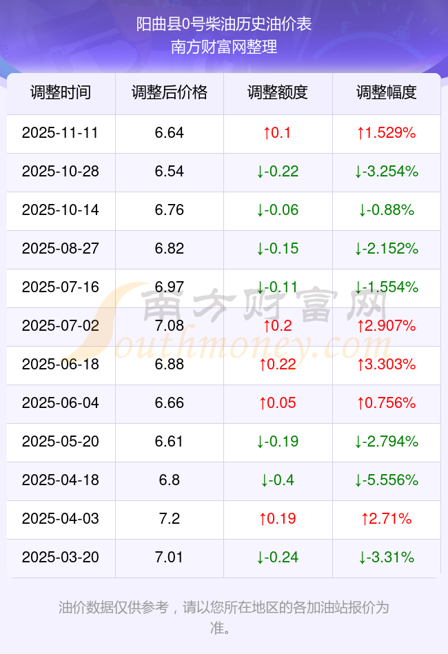 阳曲县0号柴油历史油价表