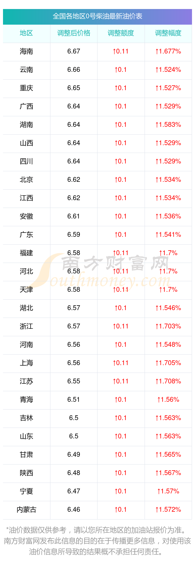 以上数据仅供参考,请以您所在地区的加油站实际售价为准。开云手机web版登录入口发布此信息的目的在于传播更多信息,对使用该油价信息所导致的结果概不承担责任。