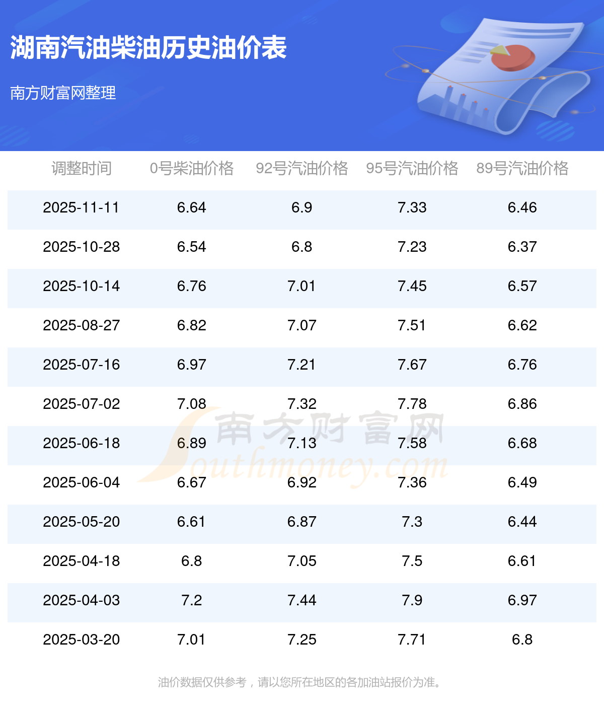 (11月22日)全国油价一览表