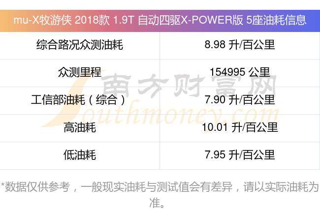 数据仅供参考,一般现实油耗与测试值会有差异,请以实际油耗为准。