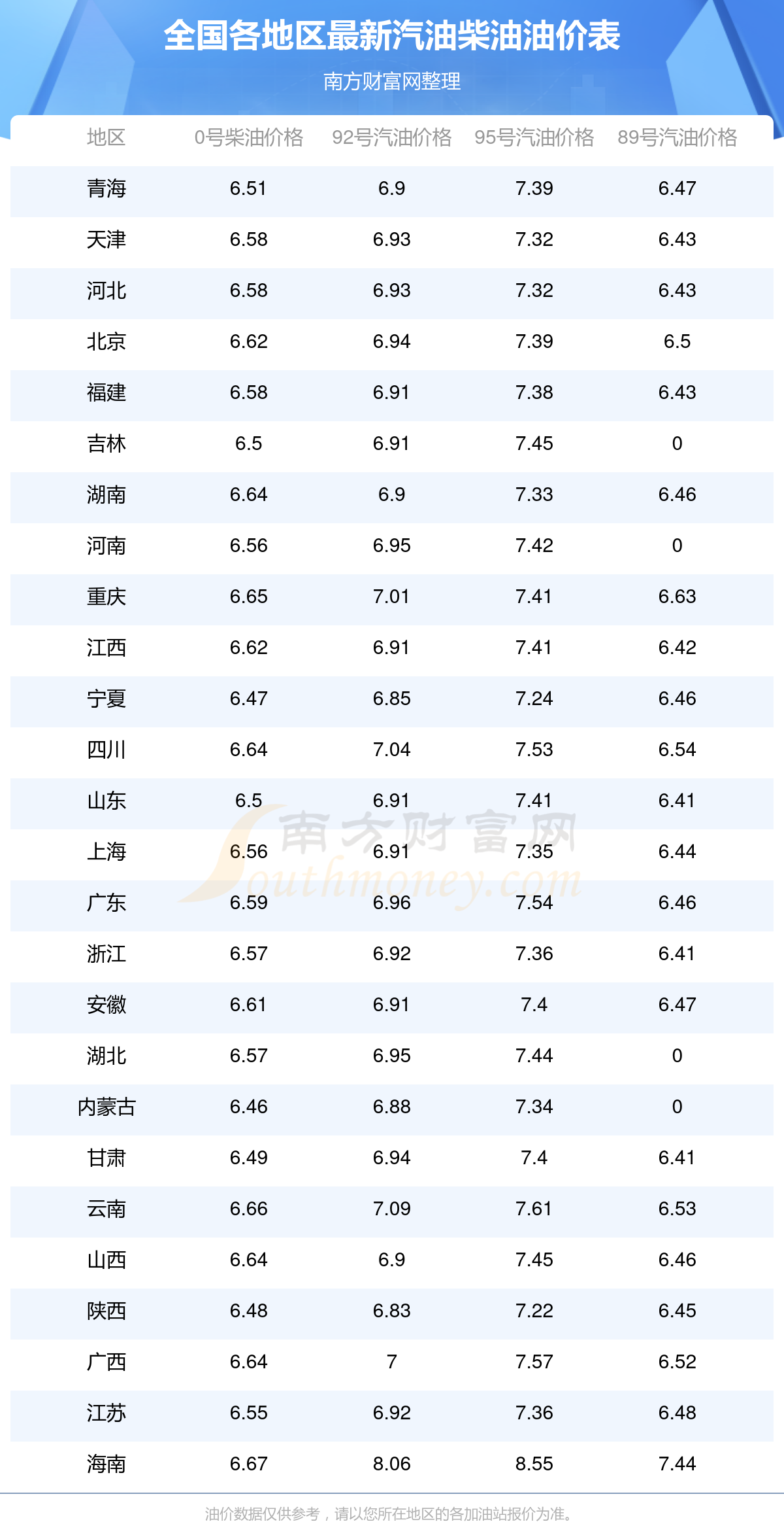 本站提供的油价数据仅供参考,具体数据以加油站报价为准。