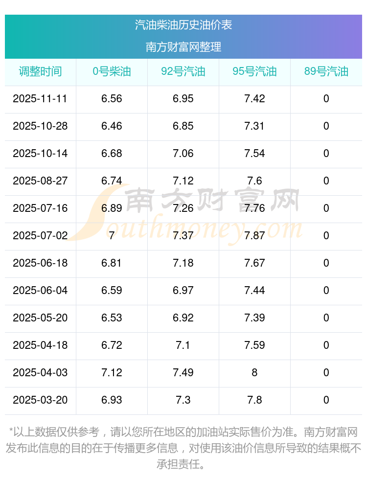 11月22日河南信阳95号汽油的价格为7.42元/升,这是11月11日调整后的价格,对比上轮调整上涨了0.11元,上涨1.505%。下一轮油价调整时间11月24日24时,距离现在还有2.33天。