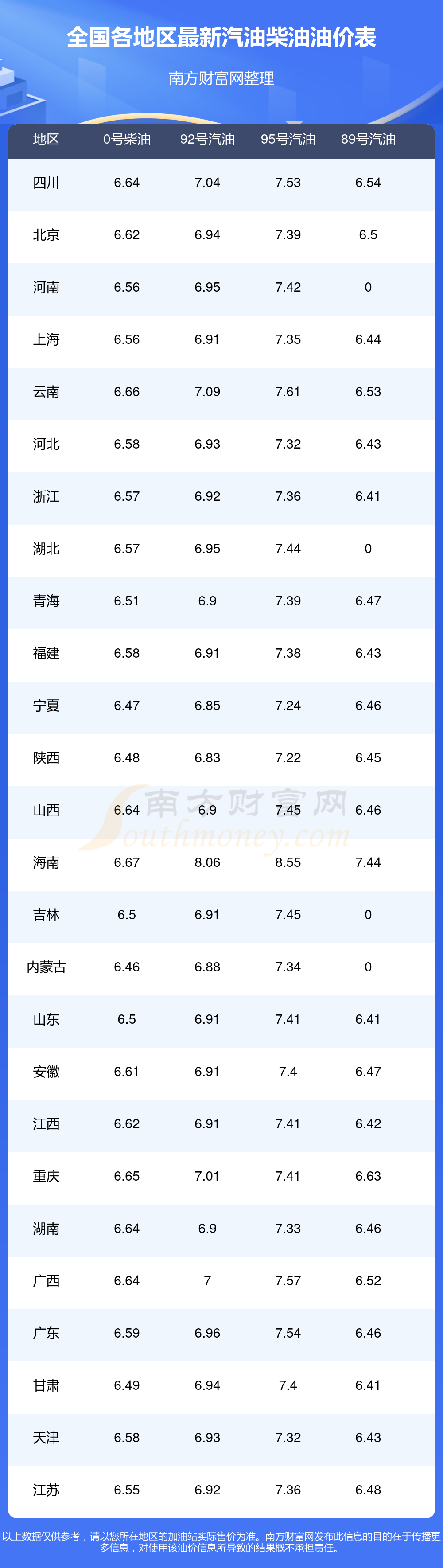 以上数据仅供参考,请以您所在地区的加油站实际售价为准。开云手机web版登录入口发布此信息的目的在于传播更多信息,对使用该油价信息所导致的结果概不承担责任。