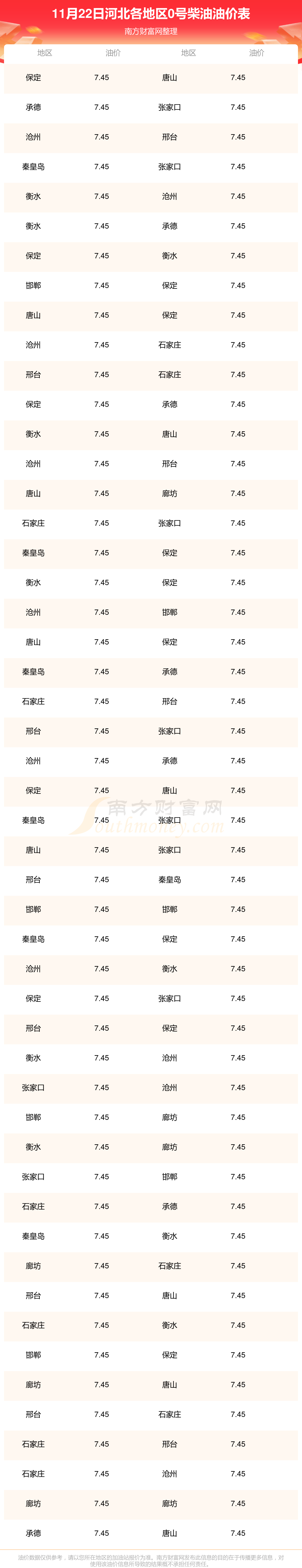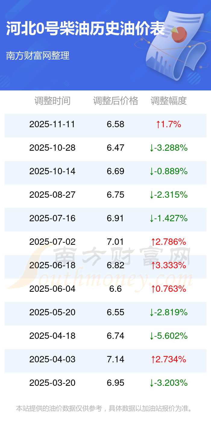 河北各地区最新0号柴油油价表