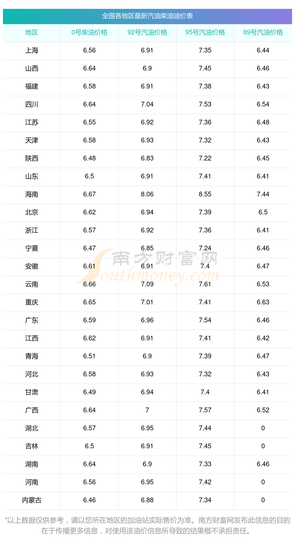 2025年11月22日全国油价调整及最新汽油价格表