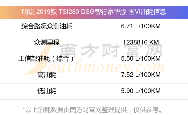 根据车主实测数据,该车型低油耗为5.90L/100km,高油耗为7.52L/100km,综合路况众测油耗为6.71L/100km,工信部综合油耗为5.50L/100km。
