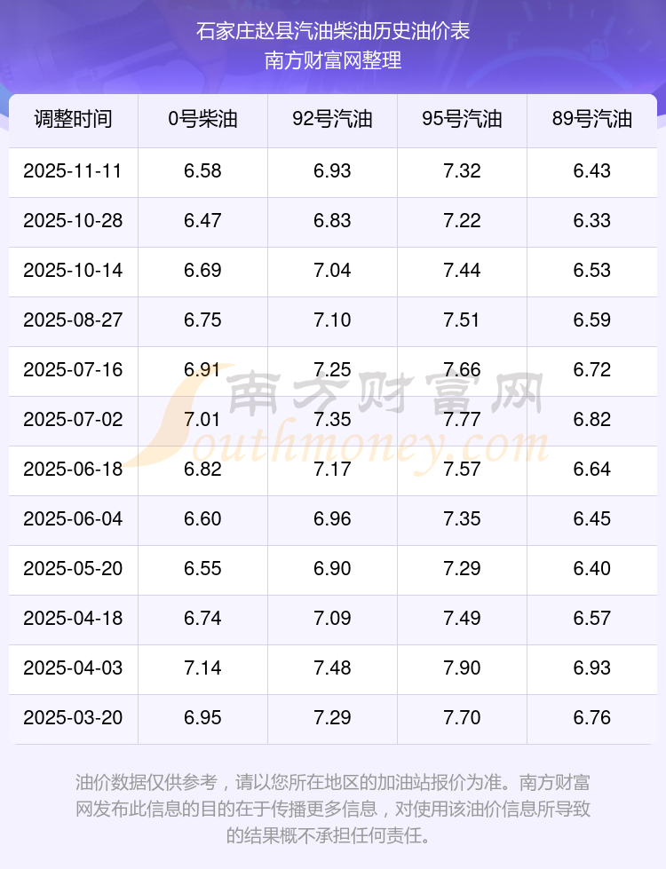2025年石家庄赵县汽油价格一览表