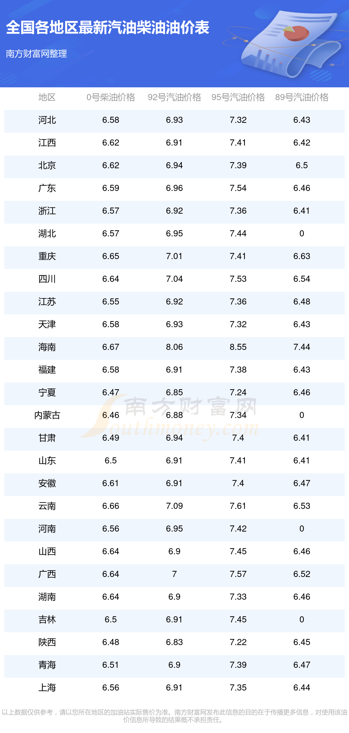 全国各地区最新油价表