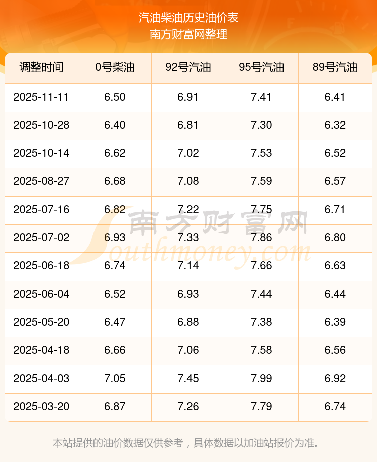 2025年92号汽油价格一览表
