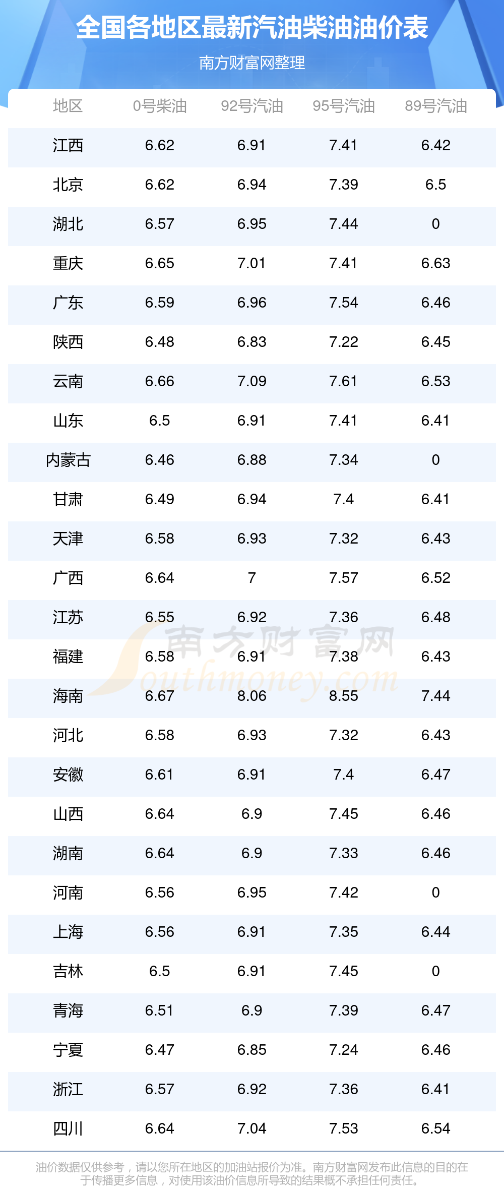 2025年11月22日全国油价调整及最新汽油价格表