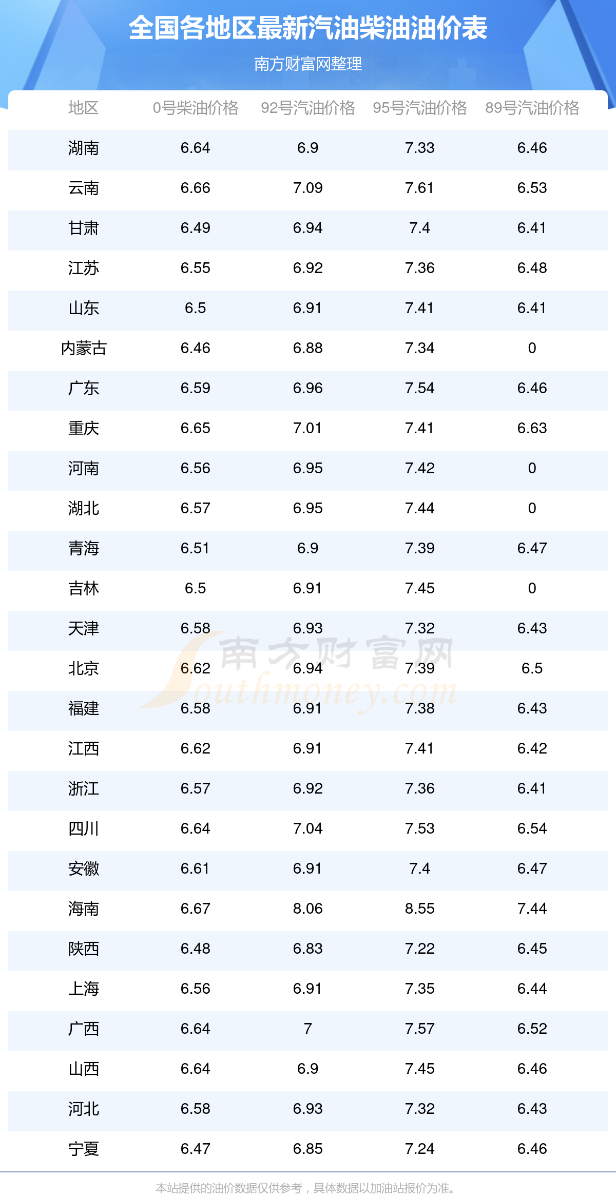 油价数据仅供参考,请以您所在地区的各加油站报价为准。