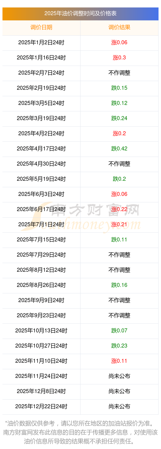番禺区11月22日油价调整时间及价格表