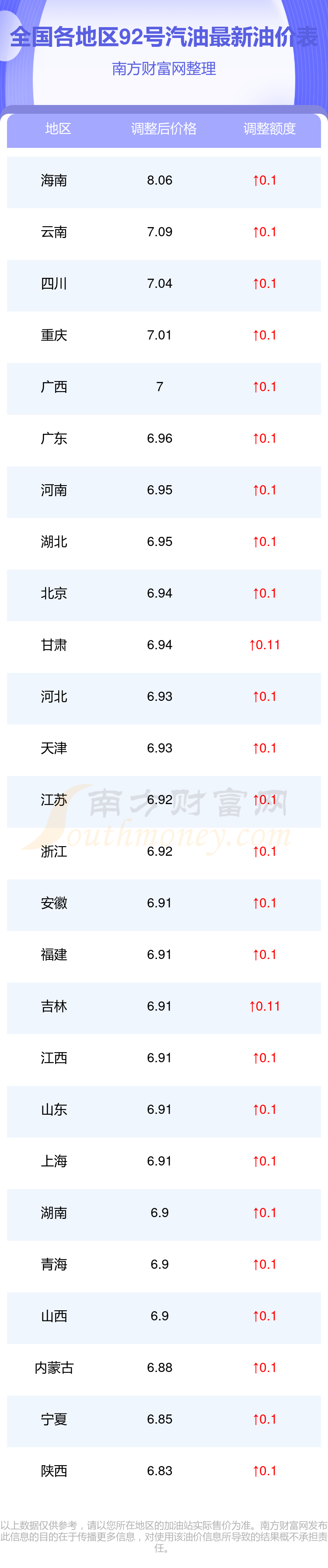 以上数据仅供参考,请以您所在地区的加油站实际售价为准。开云手机web版登录入口发布此信息的目的在于传播更多信息,对使用该油价信息所导致的结果概不承担责任。