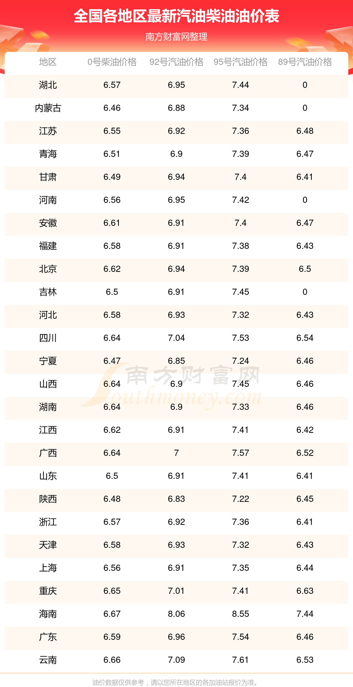 油价数据仅供参考,请以您所在地区的各加油站报价为准。