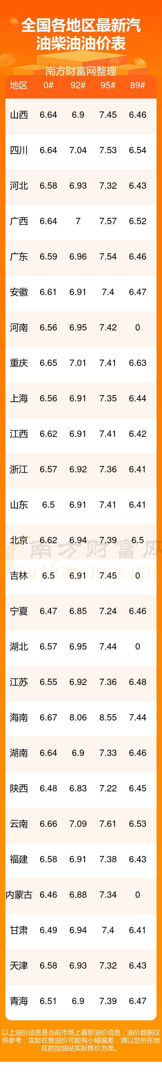 本站提供的油价数据仅供参考,具体数据以加油站报价为准。