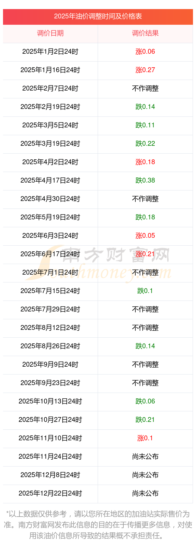油价调整最新消息:诸暨汽油、柴油11月22日每升的价格(油价调整时间11月11日):92号汽油6.92元;95号汽油7.36元;89号汽油6.41元;0号柴油6.57元。诸暨下一轮油价调整时间11月24日24时,距离现在还有2.13天。