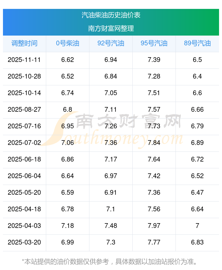 2025年95号汽油价格一览表