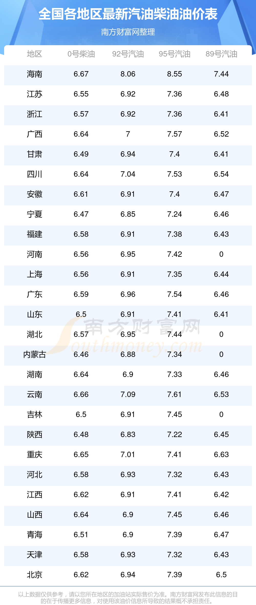 本站提供的油价数据仅供参考,具体数据以加油站报价为准。