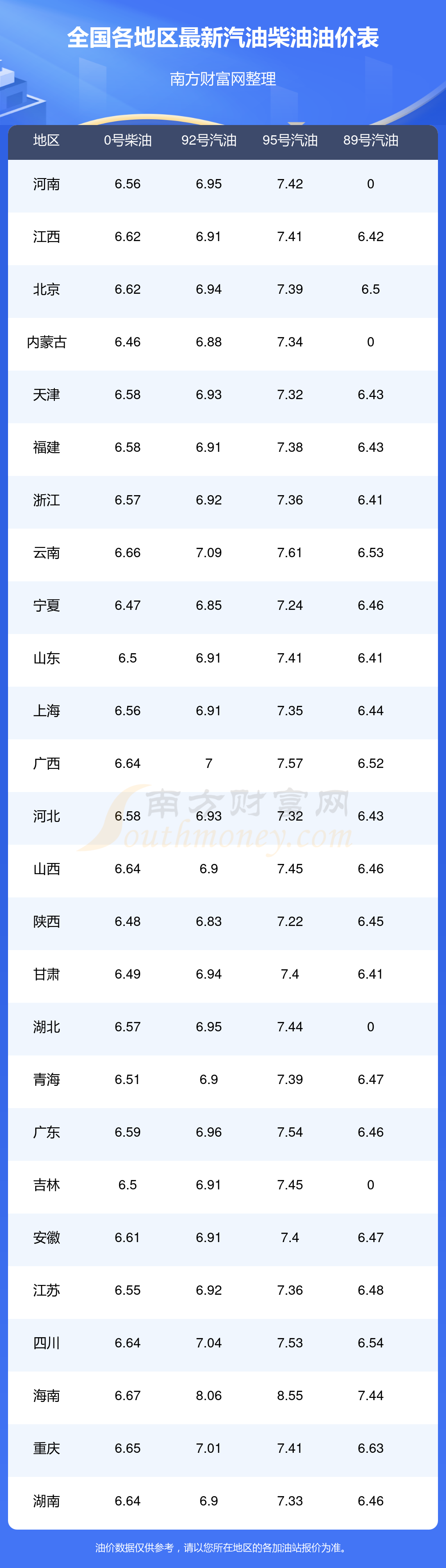 11月22日全国92号汽油最新平均价格为每升7元(油价调整时间为11月11日),其中全国92号汽油最低为陕西,价格为6.83元/升,92号汽油最高为海南,价格为8.06元/升。,下一轮油价调整时间11月24日24时,距离现在还有2.07天。