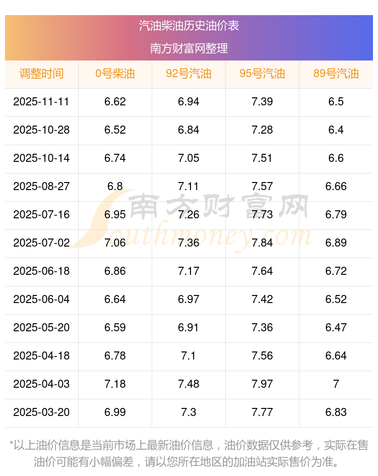 2025年95号汽油价格一览表