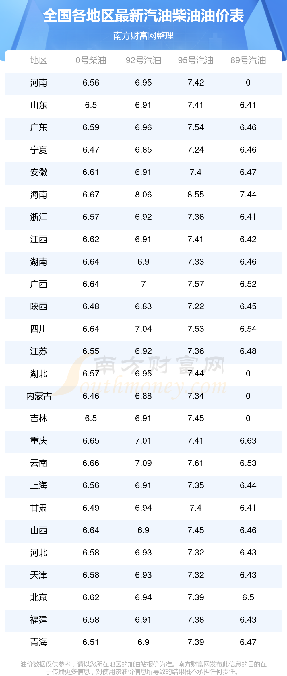 2025年11月23日全国油价调整及最新汽油价格表