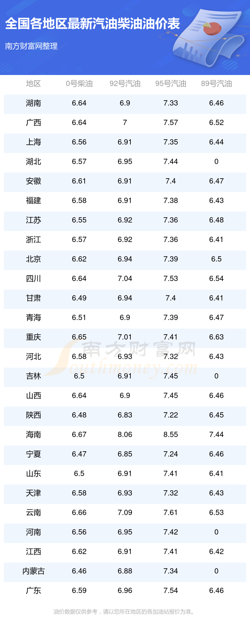 11月23日全国95号汽油最新平均价格为7元每升(根据11月11日调整后的价格),其中95号汽油最高为海南,价格为8.55元/升,全国95号汽油最低为陕西,价格为7.22元/升。,下一轮油价调整时间11月24日24时,距离现在还有1.82天。