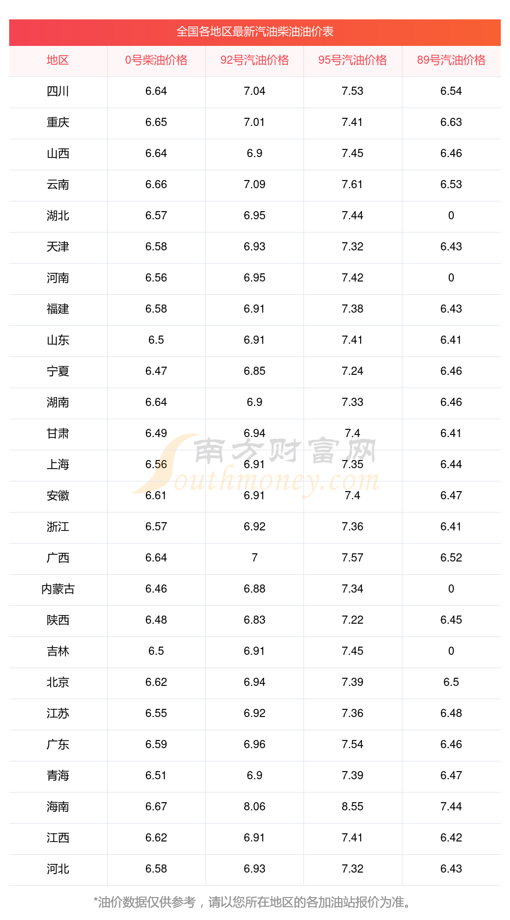 以上数据仅供参考,请以您所在地区的加油站实际售价为准。开云手机web版登录入口发布此信息的目的在于传播更多信息,对使用该油价信息所导致的结果概不承担责任。