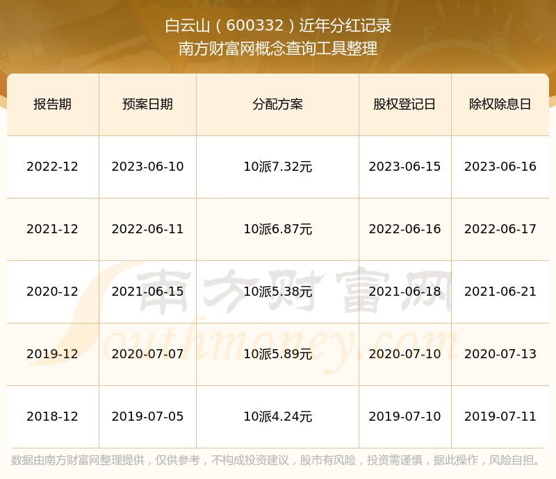 白云山最新一次公布的分红方案:10派7.32元。