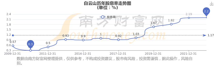 白云山历年股息率走势如下图:
