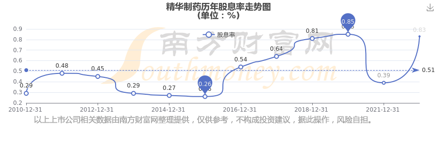 近年精华制药年度股息率走势如下图: