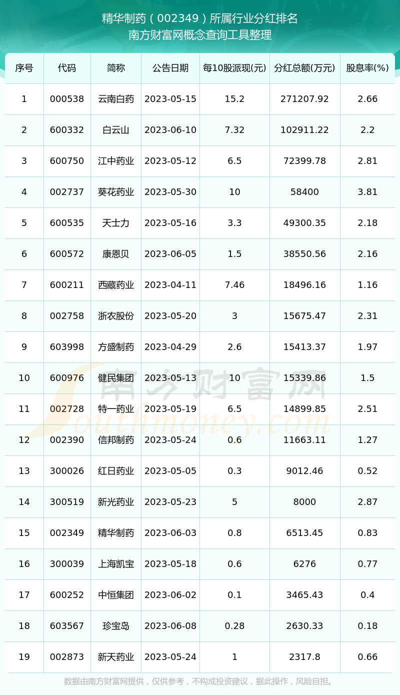 二、精华制药002349行业分红排名