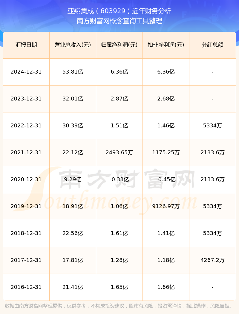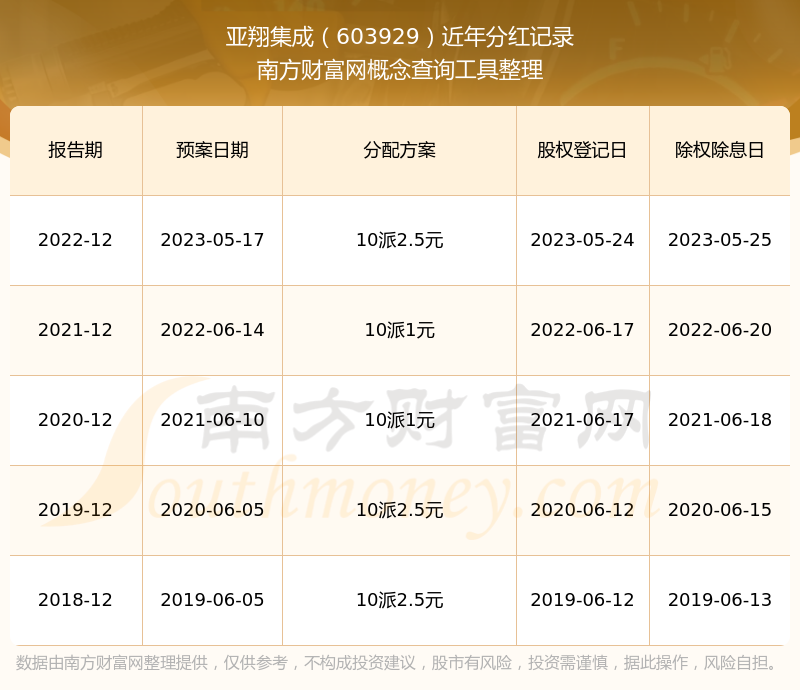 亚翔集成603929分红时间: