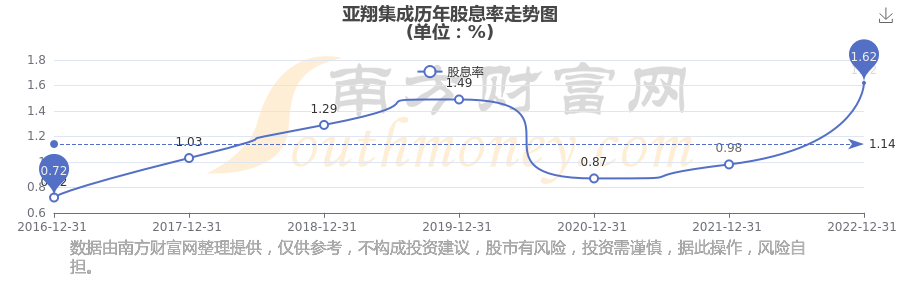亚翔集成历年股息率走势如下图: