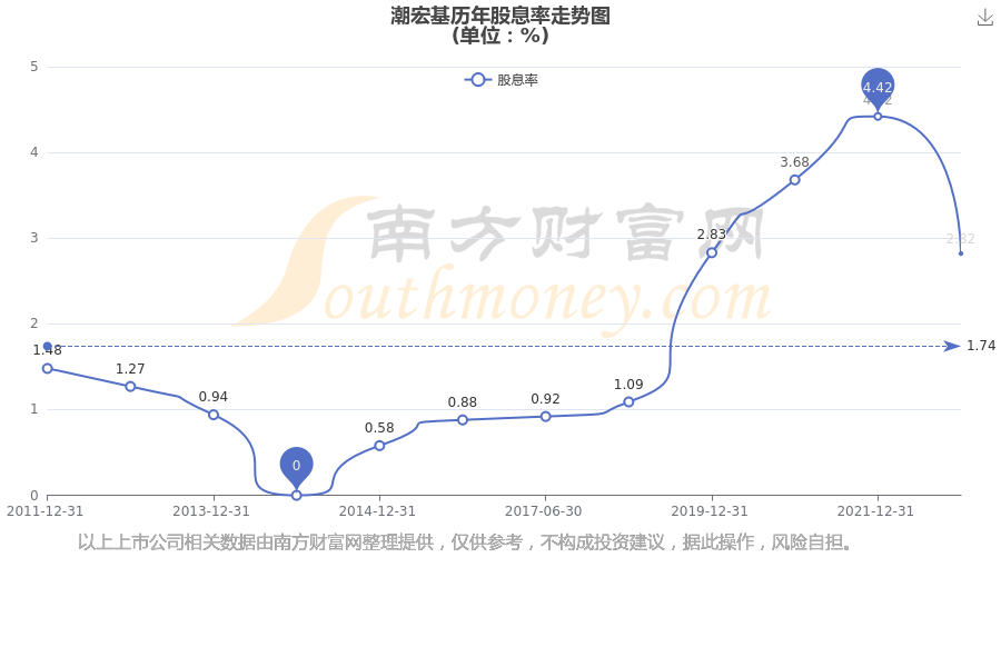 潮宏基最新一次公布的分红方案为10派2元。本次权益分派股权登记日为2023年6月6日,除权除息日为2023年6月7日,派息日为2023年6月7日。