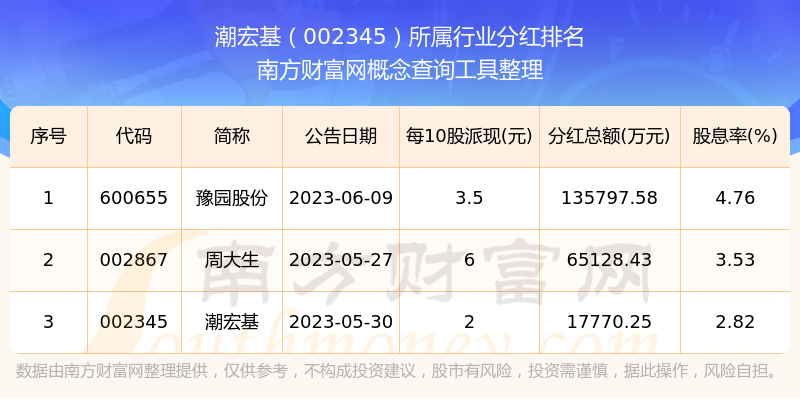 按照开云手机web版登录入口趋势选股系统统计,潮宏基所属行业为珠宝首饰行业,珠宝首饰行业分红排名情况如下表: